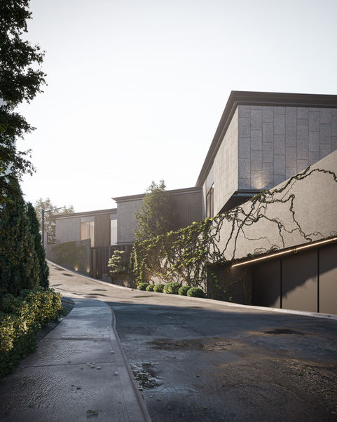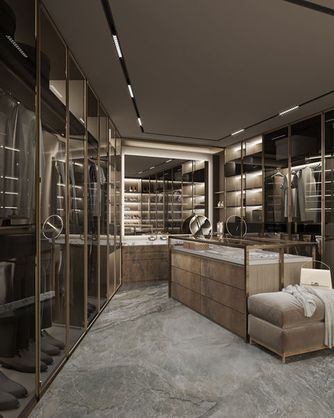 Marble, bronze accents, moldings, and a dark material palette create an atmosphere of warmth and sophistication. The result is a residence defined by topography, materiality, and a refined contemporary character.