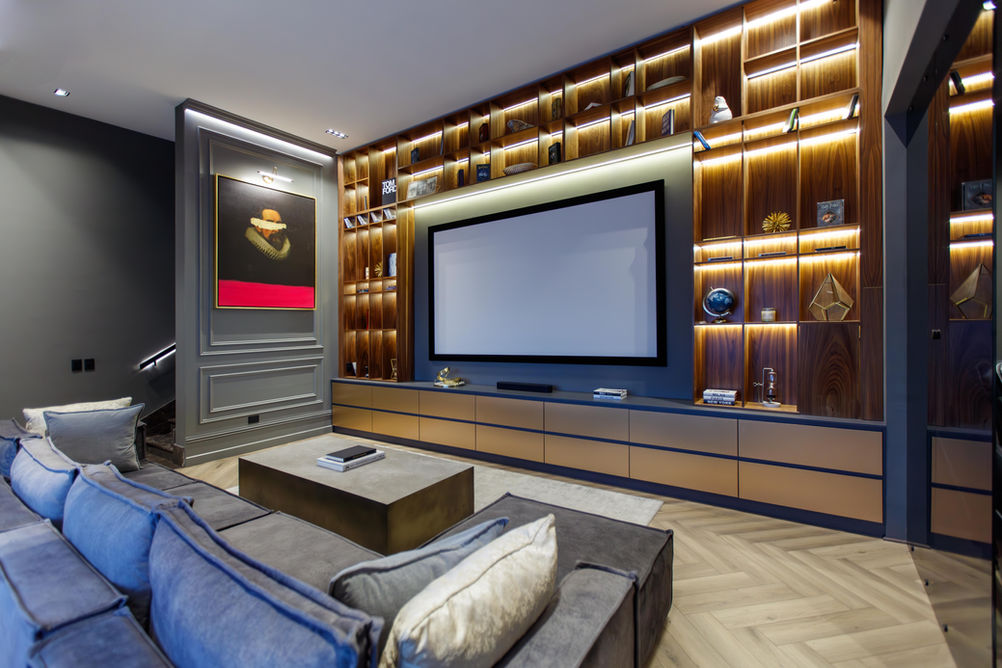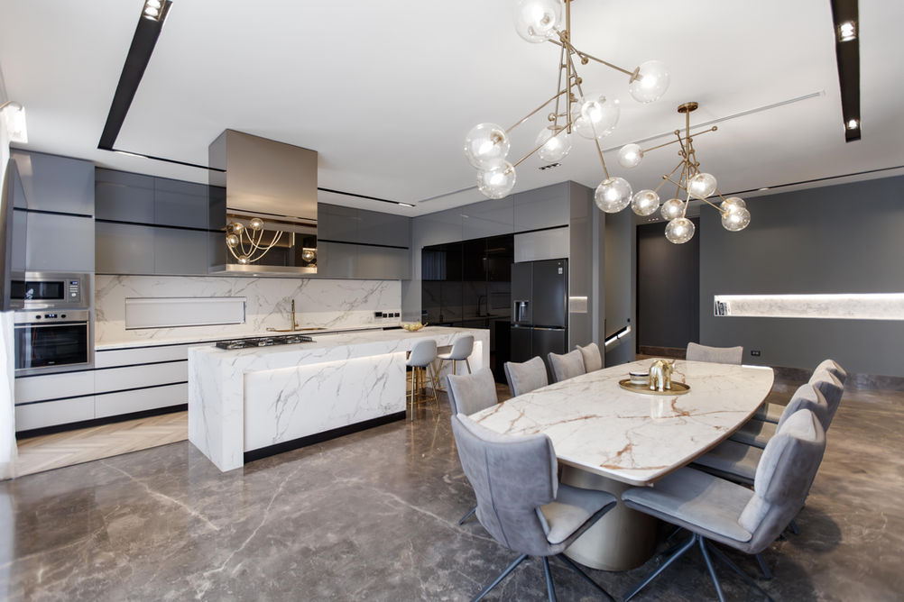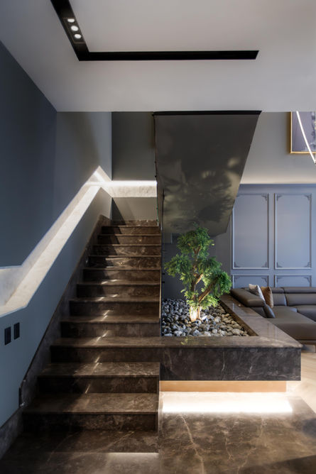 Concrete, steel, Lucerna stone, wood flooring, and technological stone define a material palette that feels both refined and enduring. Key spaces such as the living area, dining room, terrace with infinity pool, and basement cinema were designed to elevate everyday living through comfort, views, and atmosphere.